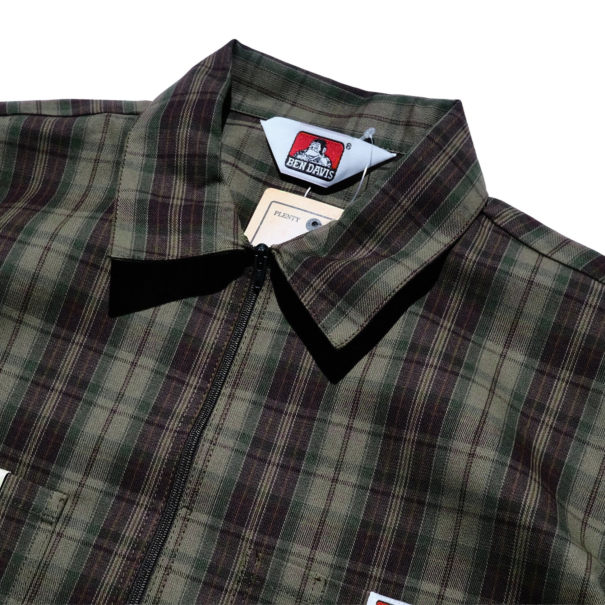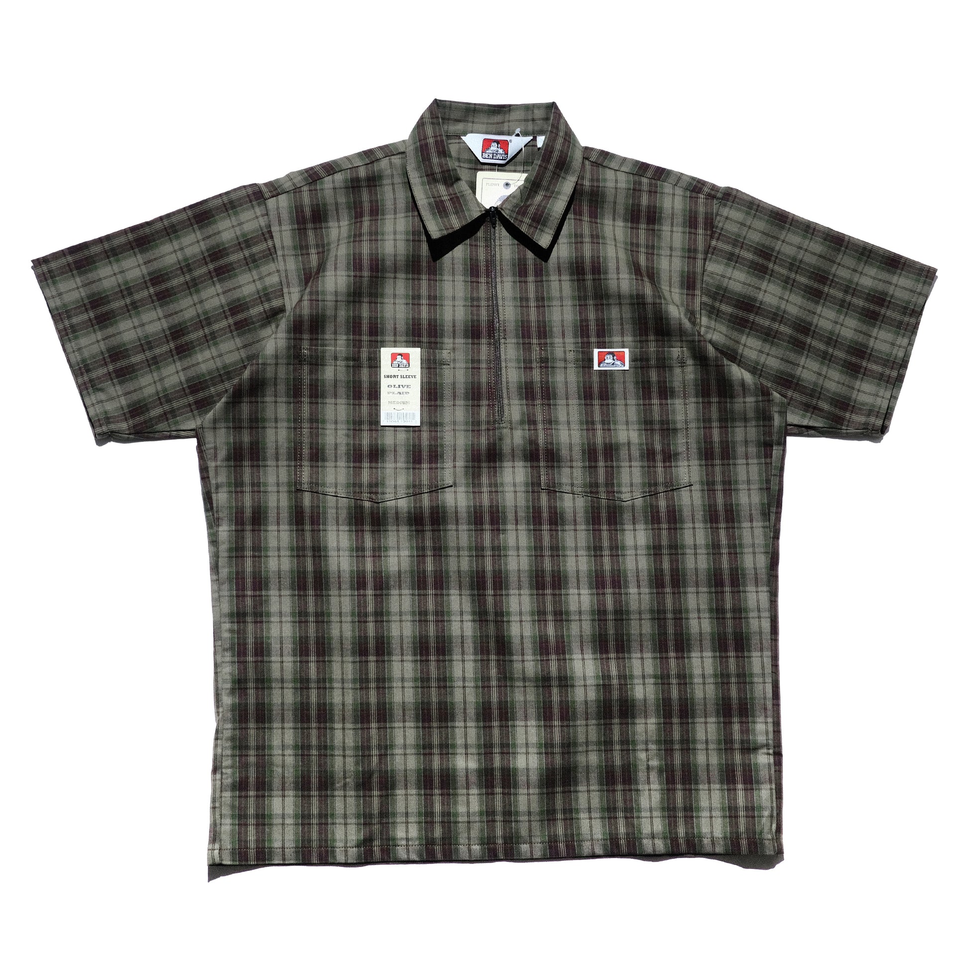Ben Davis - Short Sleeve Half Zip Plaid (Olive)
