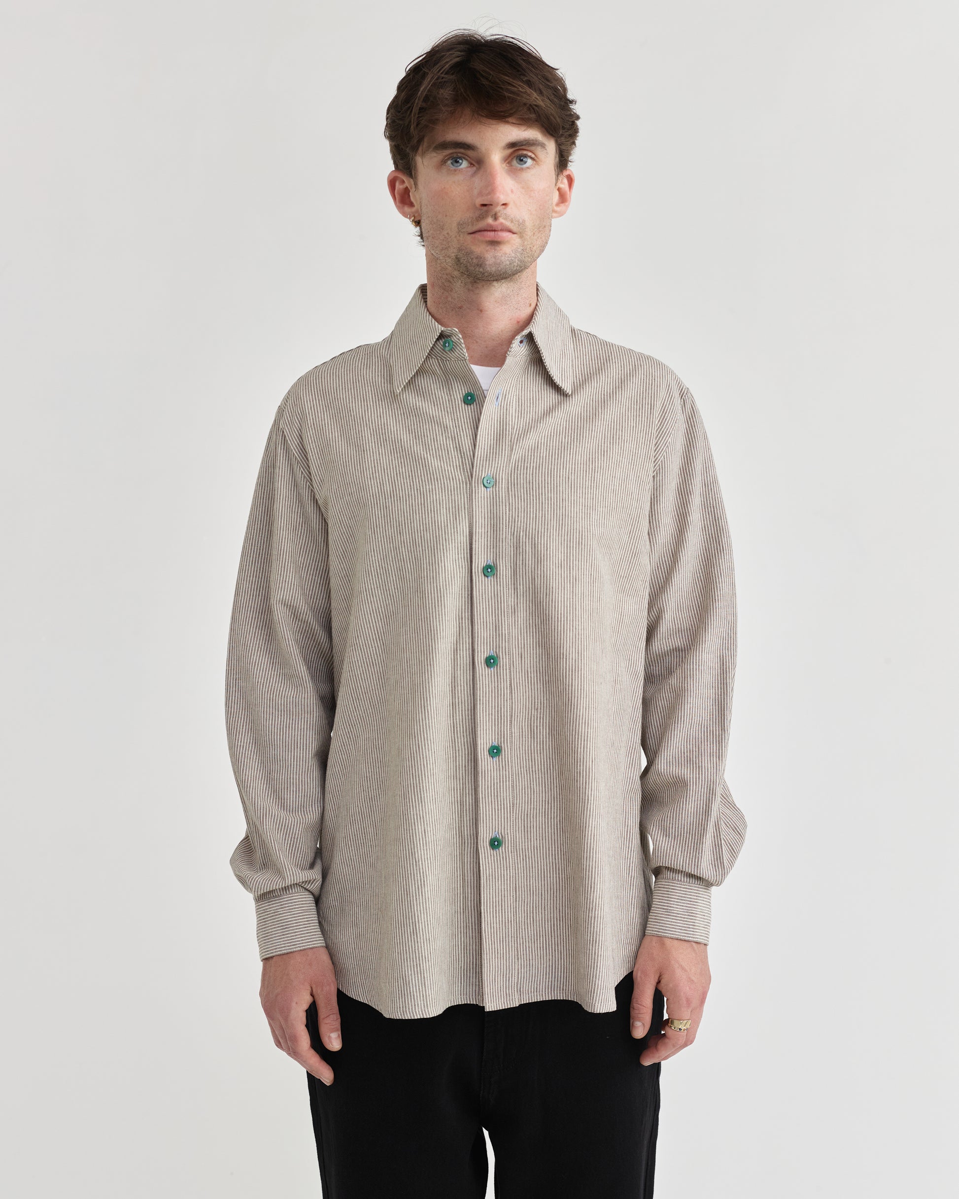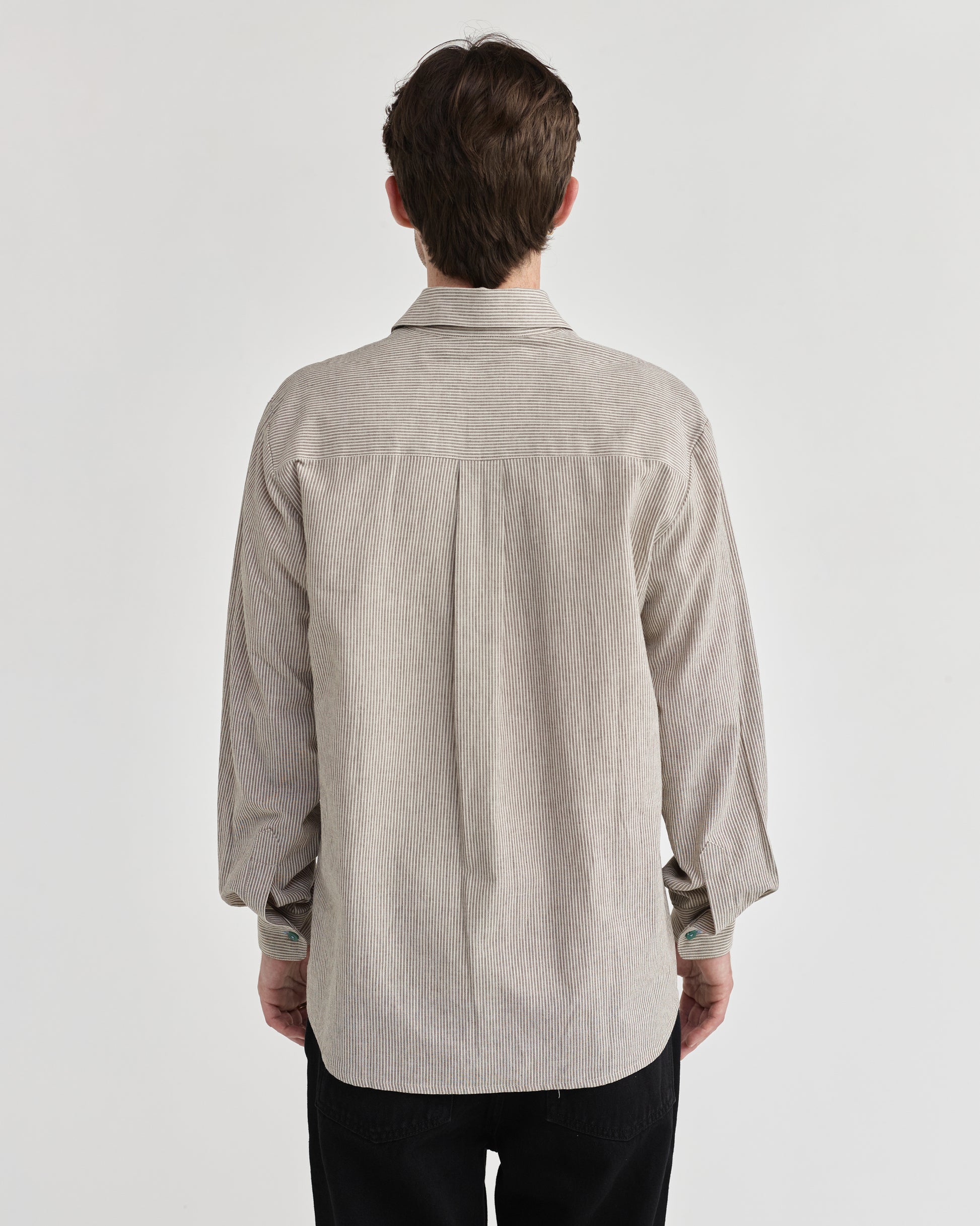 Pseushi - L/S Linen Work Shirt - Grey Stripe